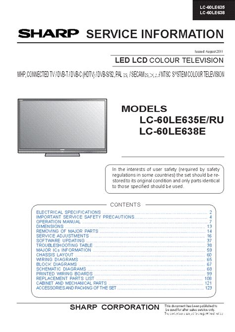 At present you are looking regarding an Sharp Lc 60le635e 60le636e 60le638e Service Manual Repair Guide example that we provide here in some type of document formats like as PDF, Doc, Strength Point, and in addition images that will make it easier for you to create an Sharp Lc 60le635e 60le636e 60le638e Service Manual Repair Guide yourself. For a clearer look, you can open some examples below. Each of the examples about Sharp Lc 60le635e 60le636e 60le638e Service Manual Repair Guide on this web site, we get from several sources so you can create a better record of your own.